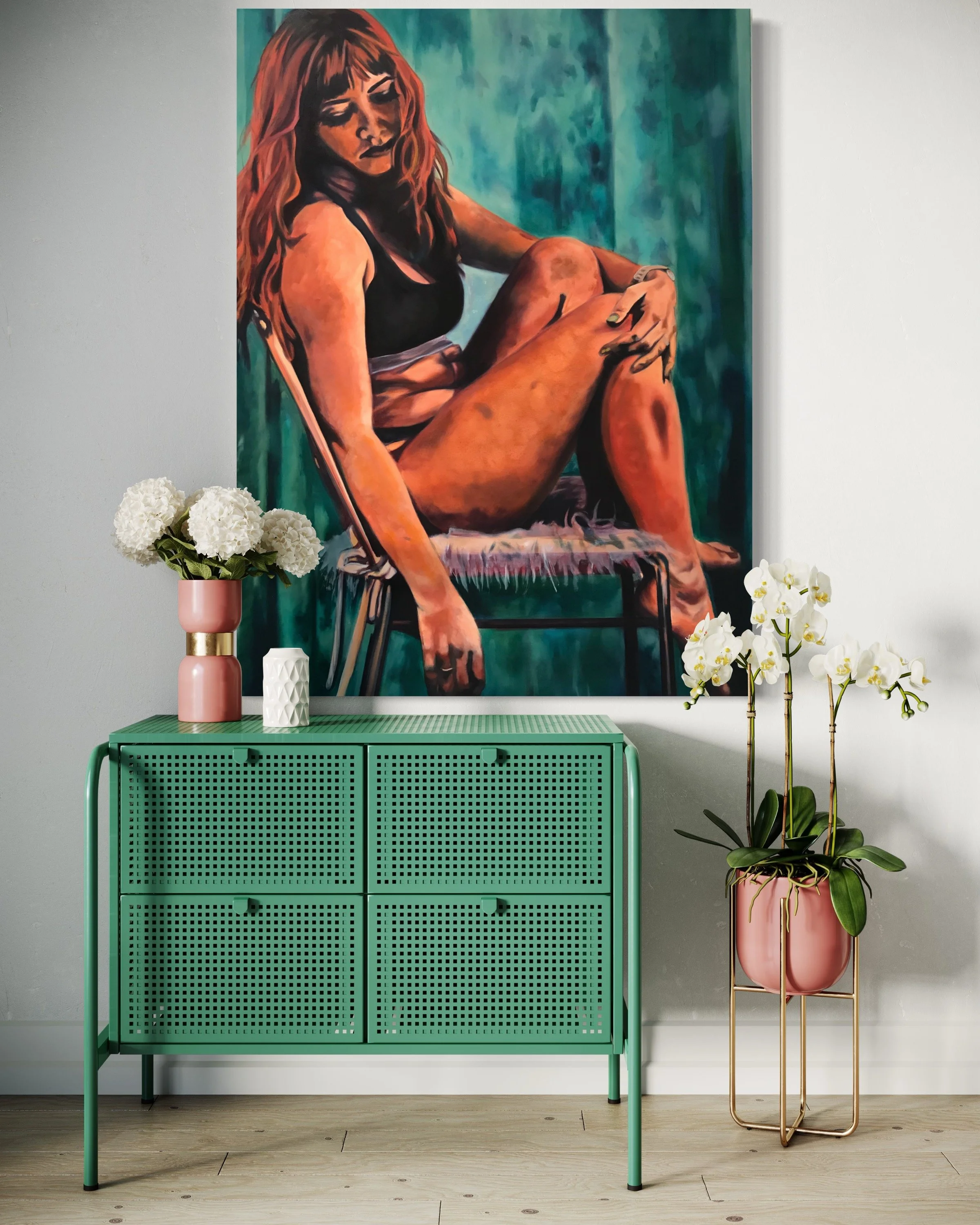 Purchased by Nate. Part One of a diptych, exploring the negative and positive connotations of being with someone vs. single. Tied Down, is about the loneliness and disconnect a person can experience while in a relationship.