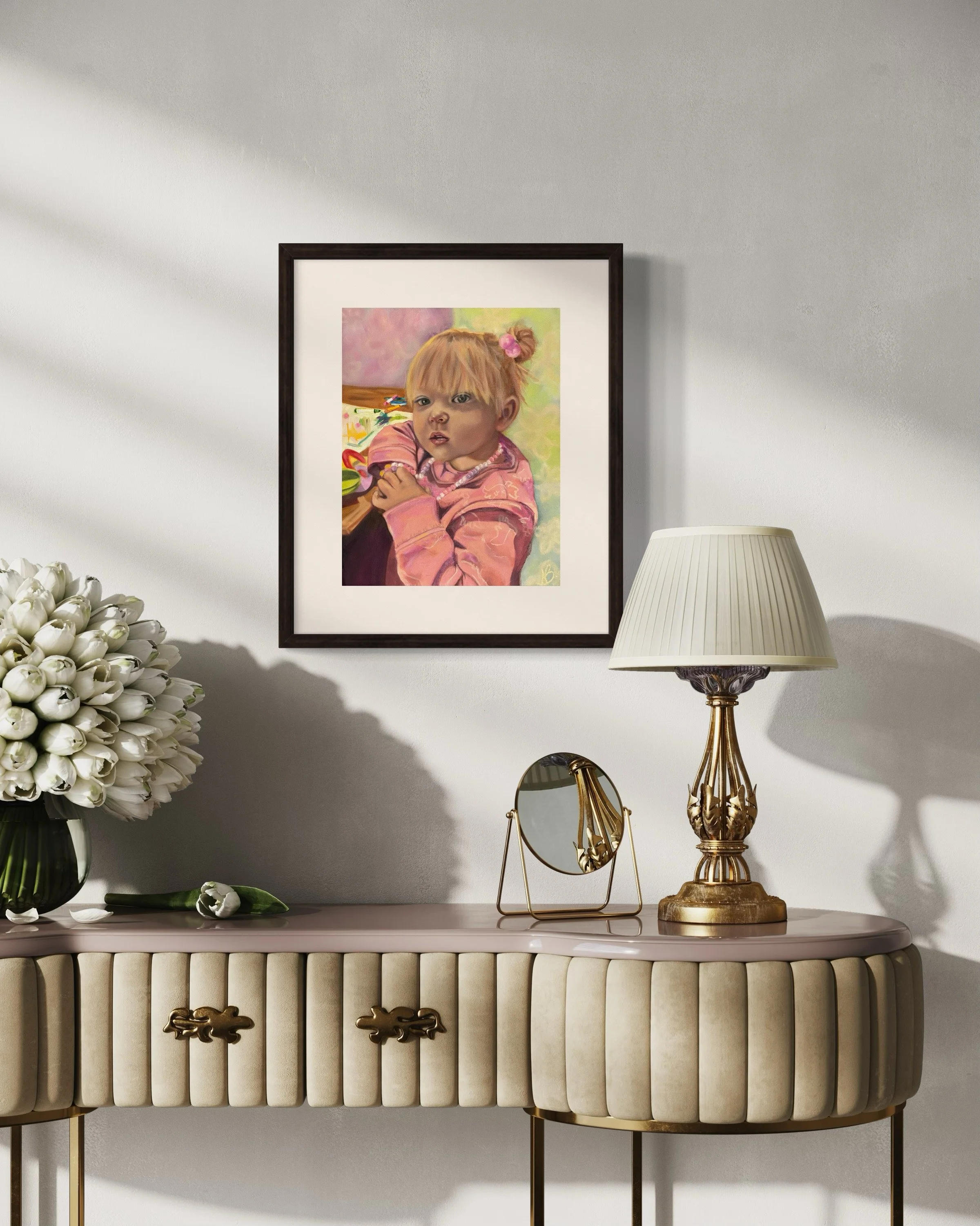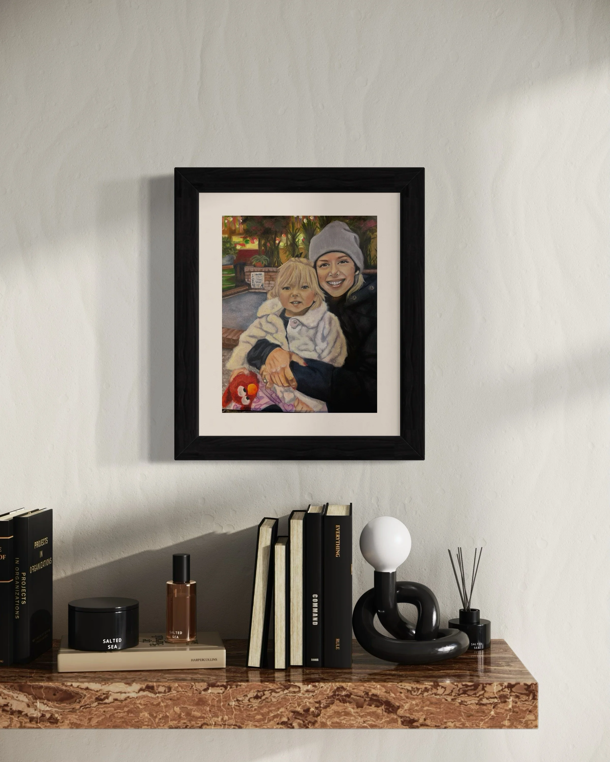 Commissioned by Nancy Volpe as a gift for her Uncle , a portrait of daughter and granddaughter.