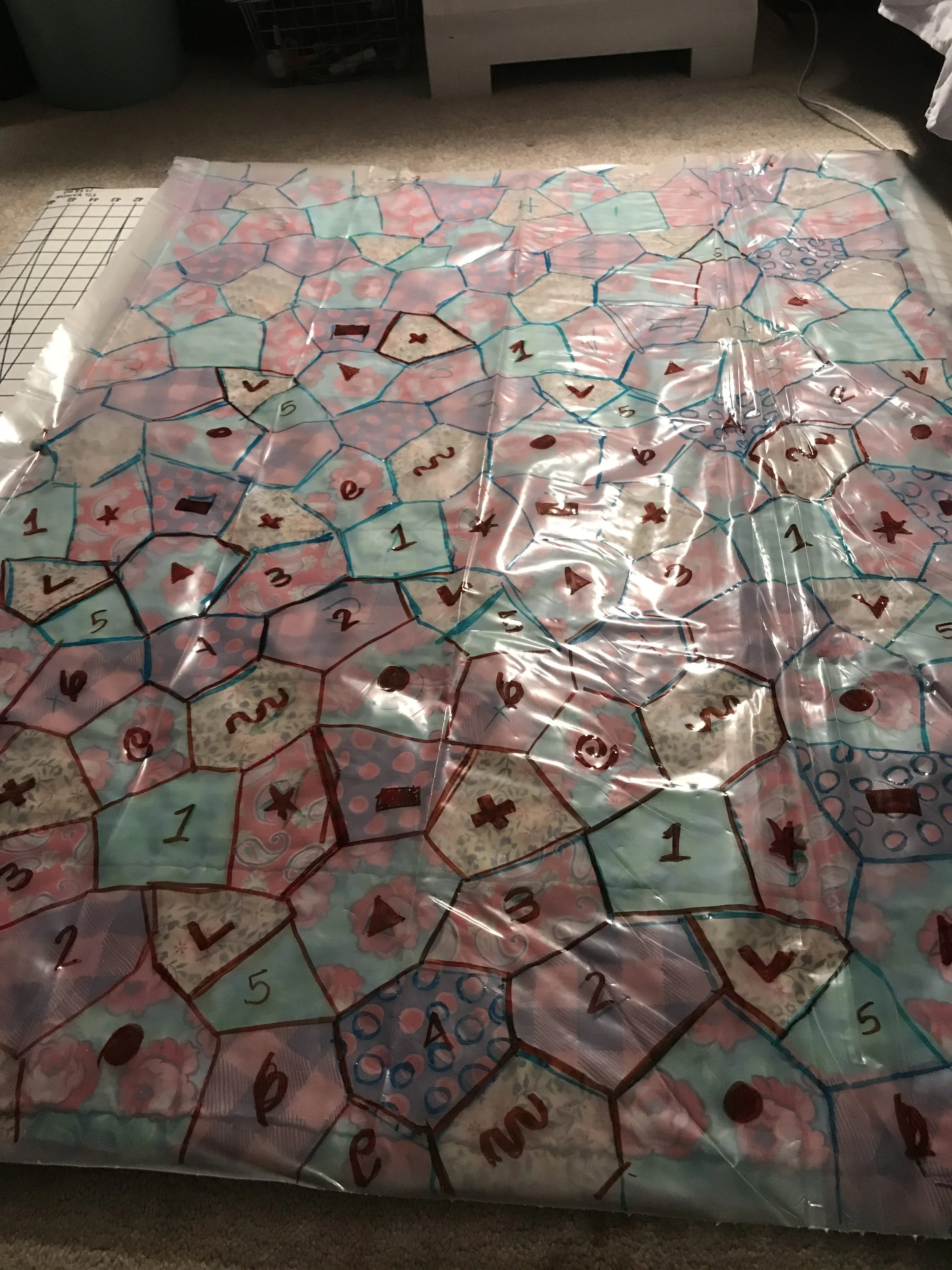In preparation to recreate the blanket, I had to understand and decipher the pattern. As a human with ADHD I often struggle when doing things in order or in an organized way. The base of this tarp really in its essence is how my brain categorizes and finds meaning in the pattern. During this process I could draw comparisons to the making of this quilt and the making of me as a person. Understanding all the memories I have had with this blanket, what I learned from those moments and how they made me who I am today. I find comfort in my blanket because it is my security, it is my insides and to me it is my love.