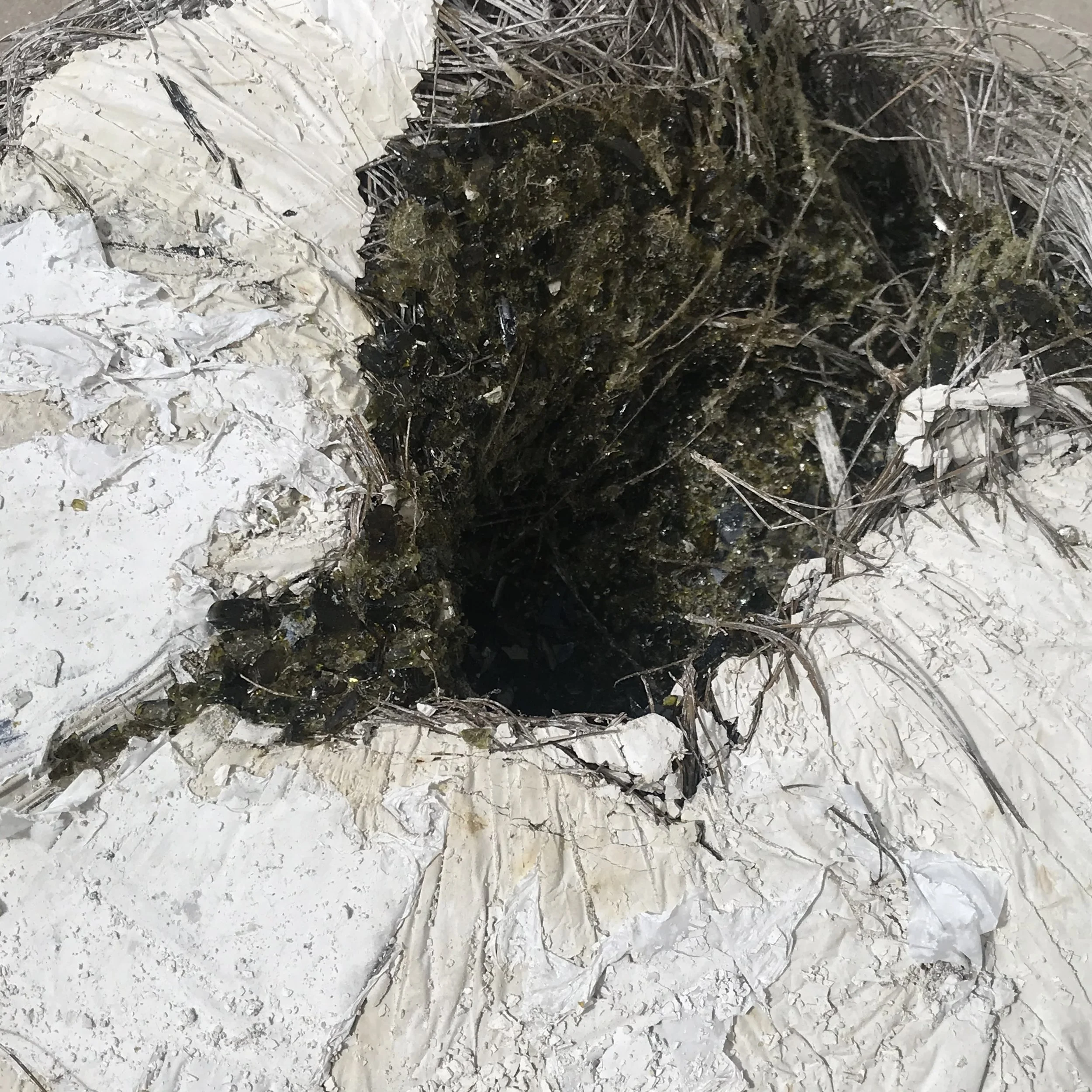 MIXED MEDIA: PINE NEEDLES, WATER, GARBAGE BAG